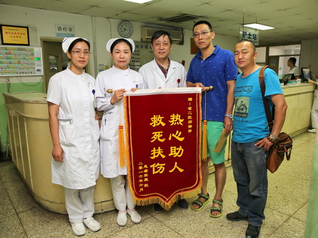 由于搶救及時,目前老人已經轉危為安,呼吸、心跳、意識已經完全恢複,目前正在住院觀察。6月12日,老人的家屬專程趕到我校第二醫院,向危急時刻出手救人的邱靜靜送來了錦旗和感謝信。